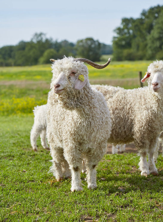 La fibre mohair super kid est récoltée sur les plus jeunes chèvres de la race dite "angora".