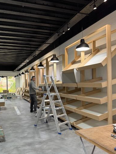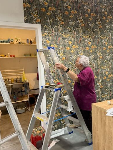 - Mes parents et Anne Marie qui ont tapissé l'arrière du comptoir et ont aidé à l'installation des marchandises et montage des meubles