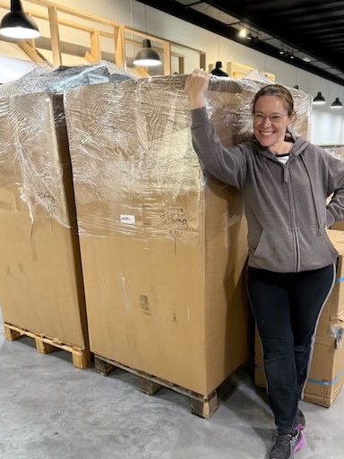 Le 3/10 c'est Ikea deuxième partie, les meubles de DMC, les panneaux muraux et comptoir ainsi que 1,5 tonne de tissus... d'ailleurs nous avons créé une nouvelle unité de mesure : l'Eugénie... dorénavant on parle en une palette d'Eugénie ou demi-palette d'Eugénie (l'unité étant de 1,53m de haut) 🤣