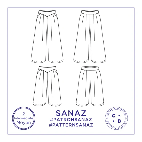 Sanaz est un patron original dans son design avec un rendu très scénographique. Je dirais qu'il s'adresse à des couturières qui ont déjà fait quelques vêtements et qui veulent travailler la précision : Les jambes, les poches italiennes sont tout à fait accessibles, par contre la ceinture représente un petit défi. Les coutures des pièces en « V » demande toujours un peu de concentration. Et selon le tissu choisi, le challenge peut monter en complexité... et notre technique en compétence du coup !