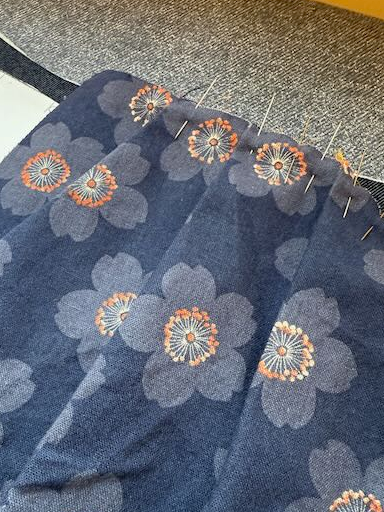 Il me restait dans ma réserve de tissus personnel : un magnifique mélange de lin/coton japonais au motif de fleurs de cerisier.