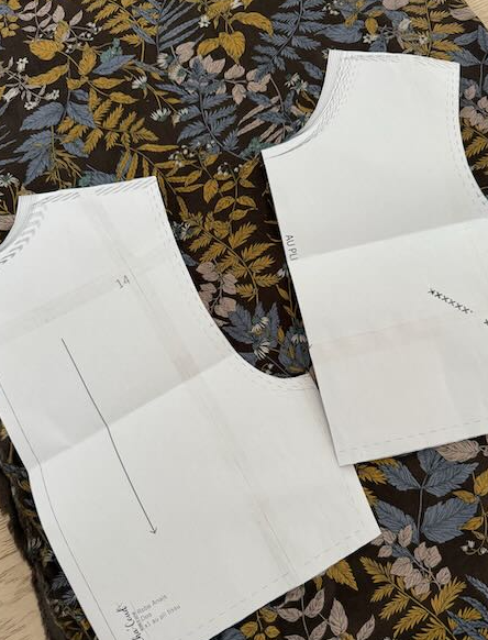 La laize étant en 110cm, j'ai réduit l'ampleur de la jupe pour pouvoir "rentrer" mes pièces dans la laize.