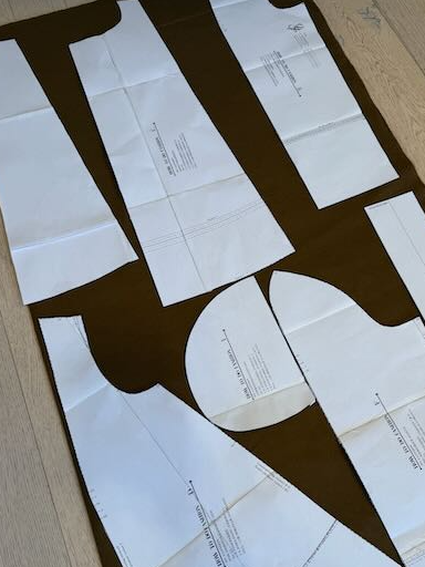J'ai coupé les pièces du patron dans mon lainage cappuccino, ça m'a pris également une heure environ.