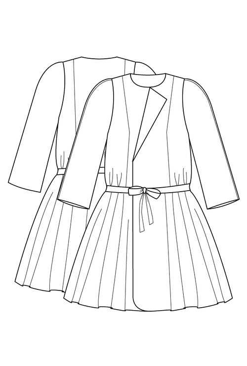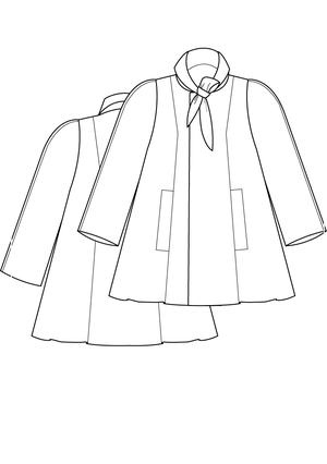 Trois versions sont disponibles dans le patron:- version 1 : Long manteau ample à col rond et poches plaquées cousues. Cette version est entièrement doublée et présente des finitions soignées. Difficulté 3 sur 5.