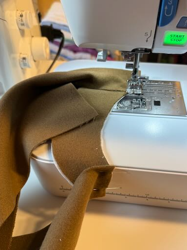 - replier la parementure sur l'endroit de la veste et coudre la veste et la parementure à 4/5cm du bas, dégarnir et retourner