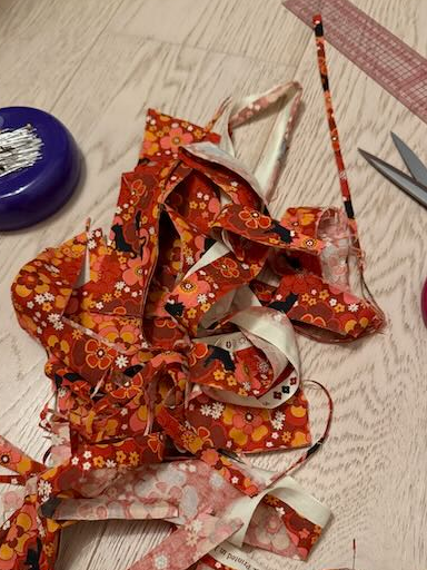 Ik heb mijn stukken geknipt en in elkaar gezet volgens het verklarende boekje van Charlotte, alles verliep zonder problemen; tot de tweede pasbeurt 😱... ramp! Totdat ik me realiseerde dat ik twee stukken had omgedraaid: de zijstukken van de rug en het voorpand! Zoals je ziet gebeuren fouten bij iedereen en ik zou goed doen om de adviezen te volgen die ik aan mijn leerlingen geef.