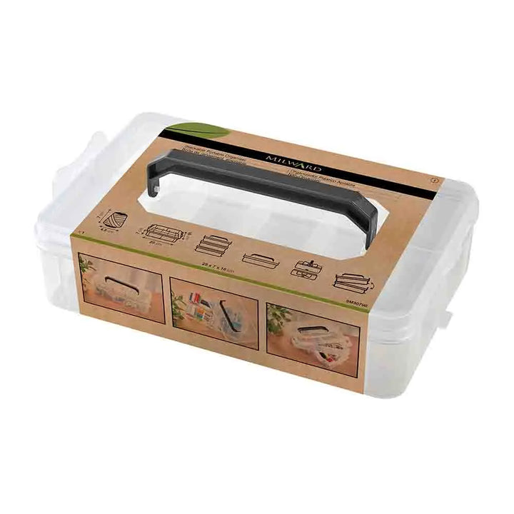 Boite de couture transparente avec poignée (prix à la pièce - non garni)