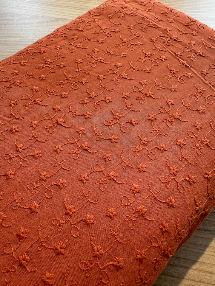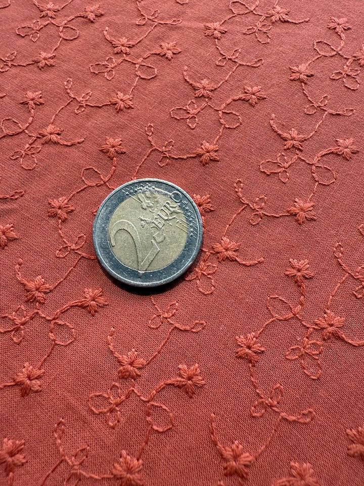 Broderie anglaise mini fleur terracotta - 100% coton (prix pour 10cm)