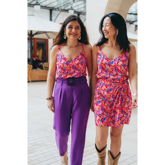 Le tissu Bloom signé My Dress Made : Une popeline de viscose douce et fluide et son dessin aquarelle ” fait main” aux couleurs éclatantes viendra illuminer le top Ava ou la jupe Lisa, à vous de choisir !!