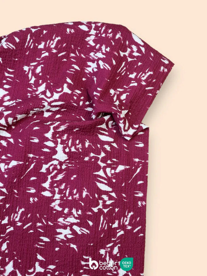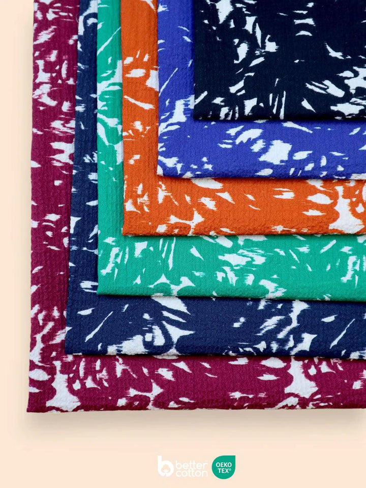 Le coton bulle Daze est le tissu idéal pour un confort élégant, avec son drapé doux et légèrement structuré. Ce coton léger à la texture seersucker « bulle » est doux, respirant et parfait pour les chemises, chemisiers et robes. Son imprimé abstrait apporte une touche colorée à toutes les garde-robes.