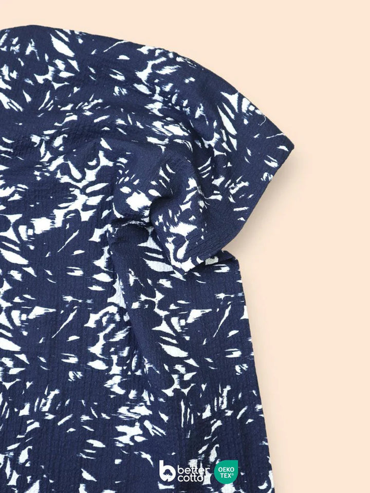 Coton Cotton bubble aspect Seer - Daze Indigo night et blanc de Mind the maker - certifié oeko-tex / BCI (prix au 10cm)