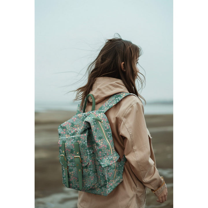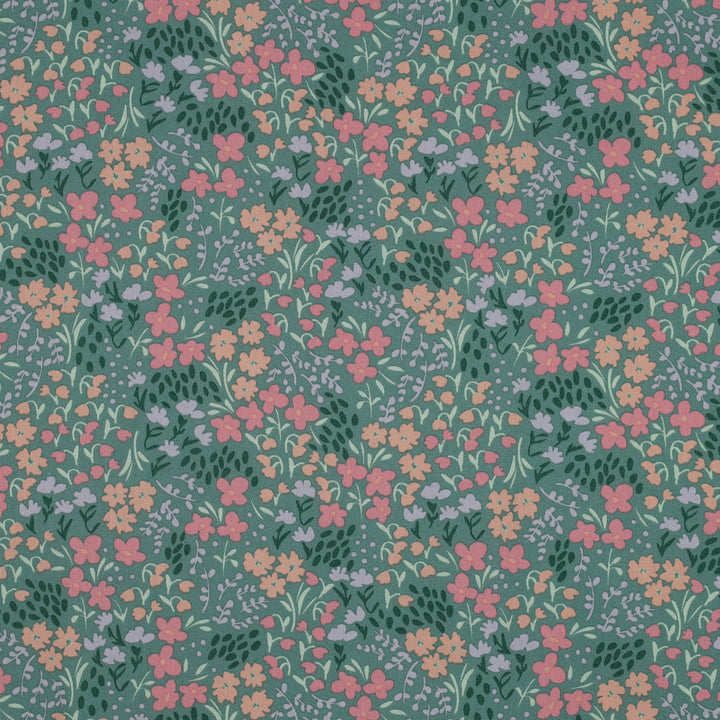 Coton enduit "myriade de fleurs sur fond vert" (prix pour 10cm)