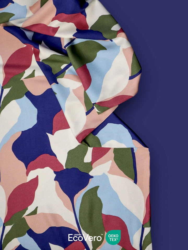 Fabriqué à partir de fibres de viscose ECOVERO™ de haute qualité, ce tissu offre un joli tombé et un toucher légèrement frais et doux. Ce tissu est très polyvalent et parfait pour une large gamme de vêtements, comme les chemises, les chemisiers, les robes, les jupes et les pantalons légers. Il se situe dans la gamme des tissus de couture légers, garantissant un aspect 100 % opaque et une durabilité impressionnante. La technique de teinture et d'impression garantit un aspect impeccable sous tous les angles.