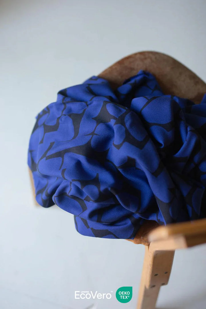 Crêpe de viscose " Shady shapes cobalt blue" Eco-Vero de Meet Milk (Prix pour 10cm)