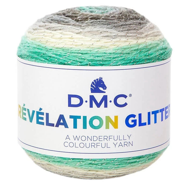 Le fil Révélation  glitter DMC est un fil léger, avec un splendide arc-en-ciel de couleurs vives. Ce fil multicolore est constitué de 6 séquences de couleurs bien contrastées. Le fil Révélation de DMC se présente sous forme de cake, ainsi le rendu de chaque couleur est visible sur la pelote.