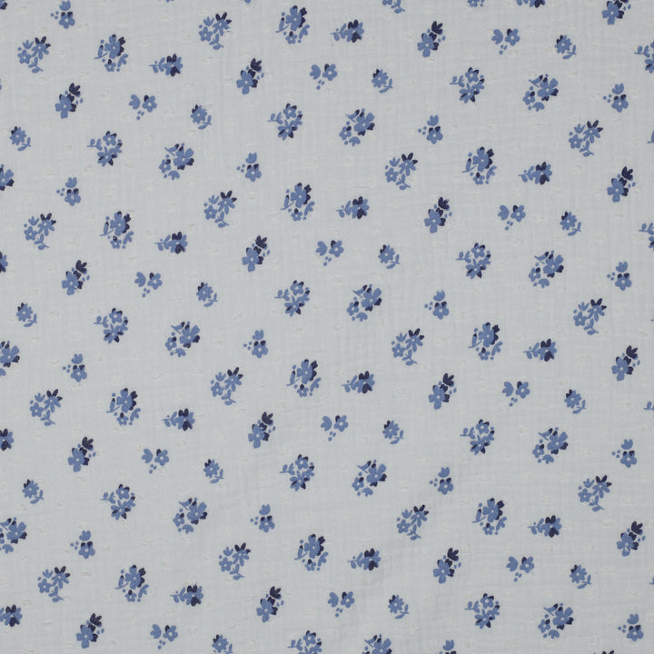 Double gaze - fleurettes bleues certifiée oeko-tex (prix pour 10cm)