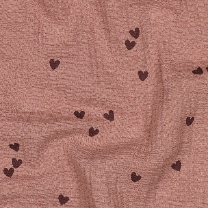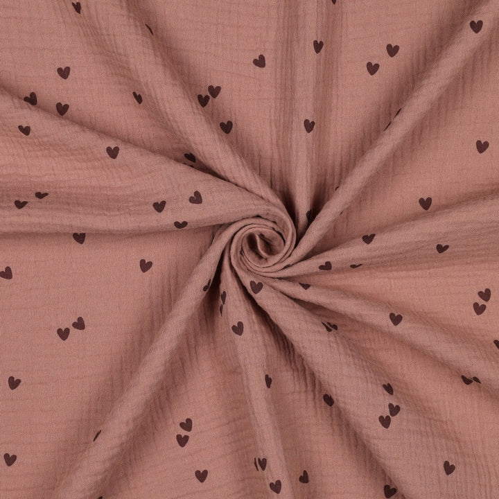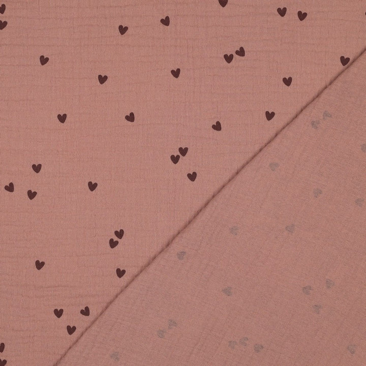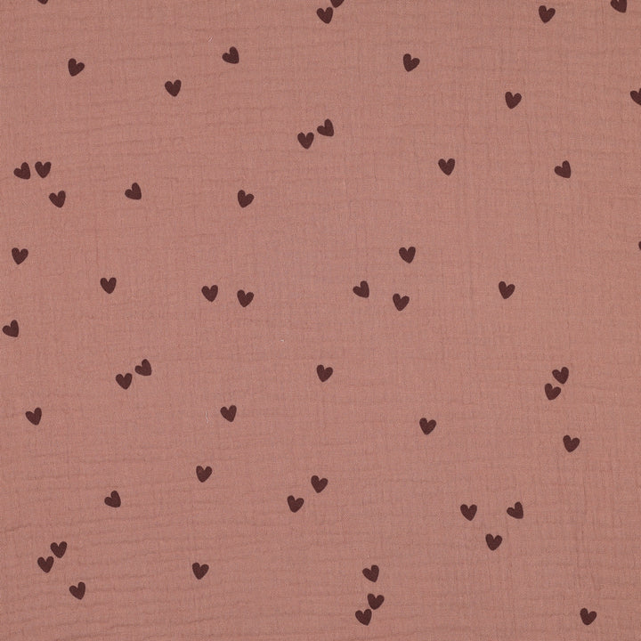 Double gaze - petits coeurs café sur fond moka certifiée oeko-tex (prix pour 10cm)