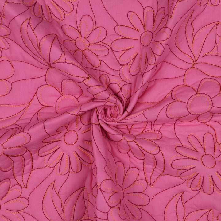 Doudoune / Stepped / tissu matelassé fleurs rose (prix pour 10cm)