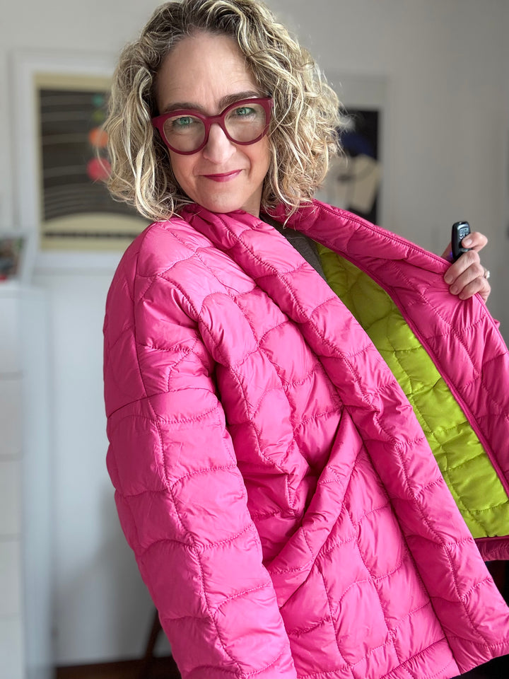 Doudoune / Stepped / tissu matelassé réversible cyan/magenta certifié oeko-tex (prix pour 10cm)