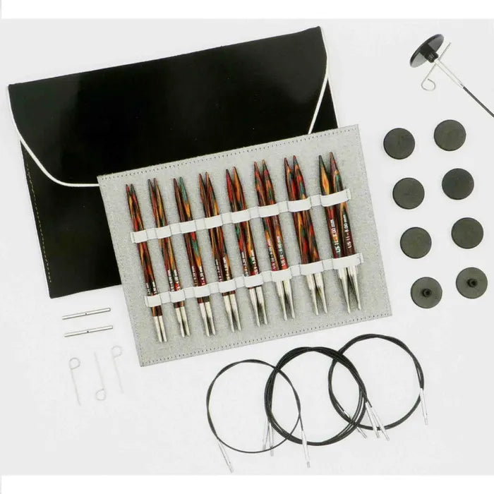 Le kit KnitPro Colourplay, avec ses aiguilles interchangeables de 13 cm et ses accessoires, contient tout le nécessaire pour tricoter en rond et en aller-retour. Les aiguilles en bois sont fabriquées dans un bois aux magnifiques couleurs. Leur finition est parfaitement lisse et elles offrent une agréable sensation de chaleur au toucher.