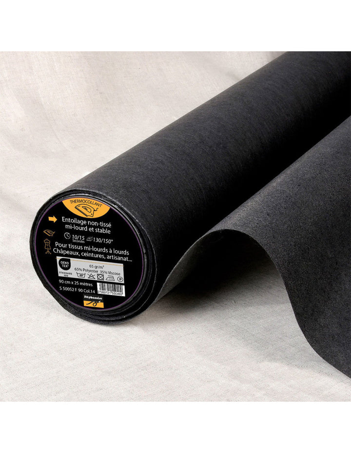 Entoilage non tissé thermocollant épais noir - équivalent H250 (prix au mètre)