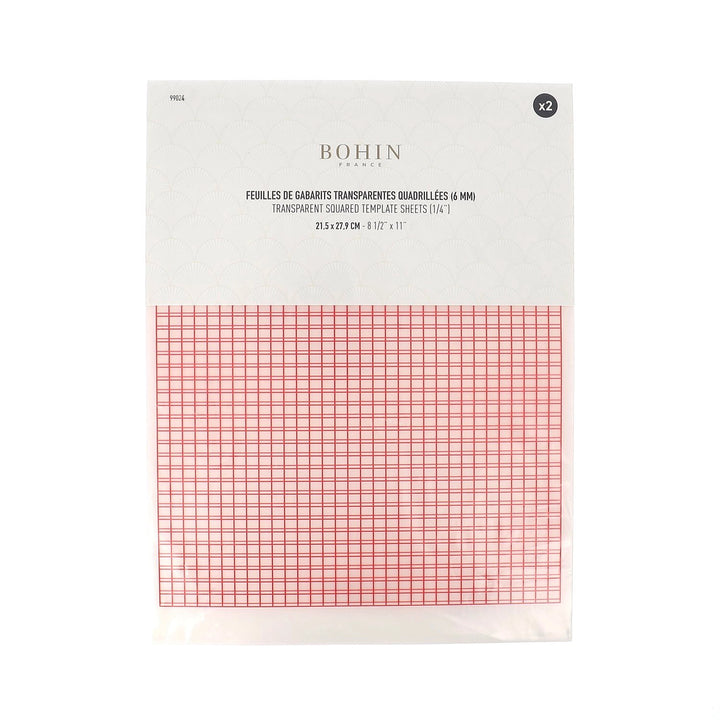 Feuilles de gabarits transparentes quadrillées - 21,5 x 27,9 cm - Quadrillage 6 mm