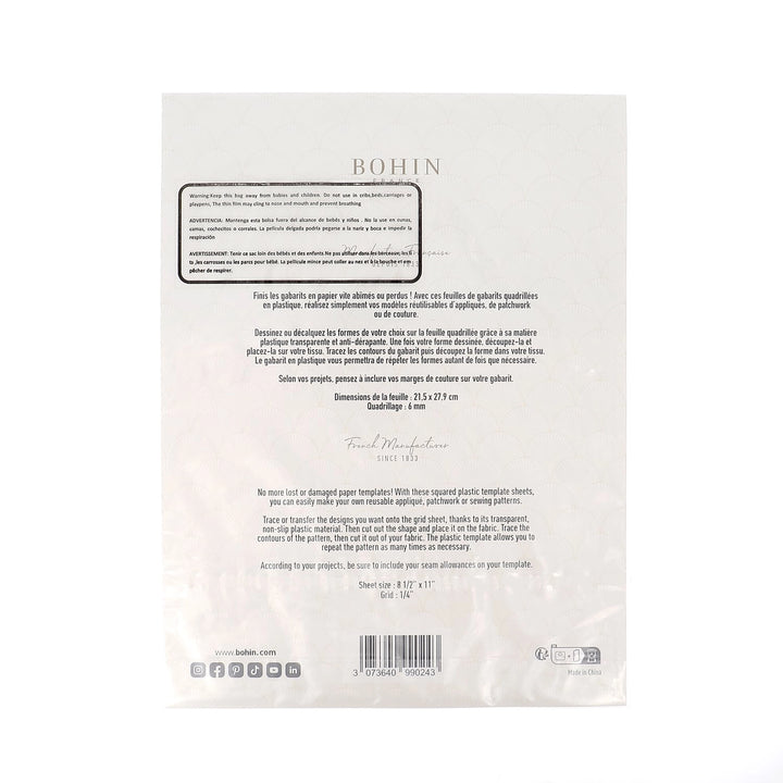 Découvrez les feuilles de gabarits transparentes quadrillées, l’outil indispensable pour tous les projets de couture créative (création d’accessoires, patchwork, appliqués...). Ces feuilles en plastique transparent anti-dérapant au quadrillage de 6 mm (1/4’’) permettent de tracer et découper facilement des motifs précis. Le gabarit obtenu est utilisable à l’infini pour un report homogènes de ses projets.