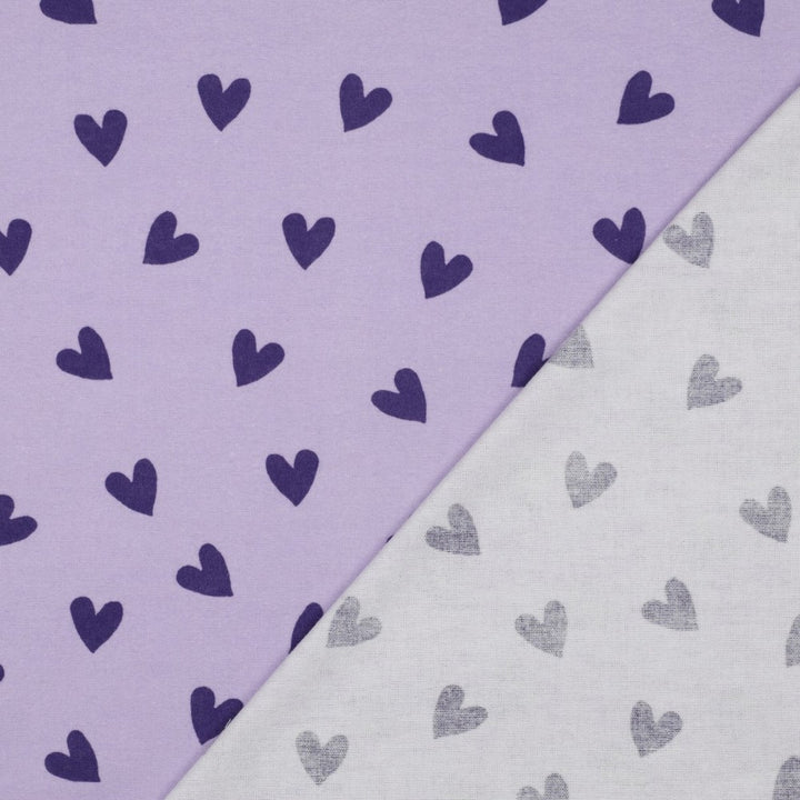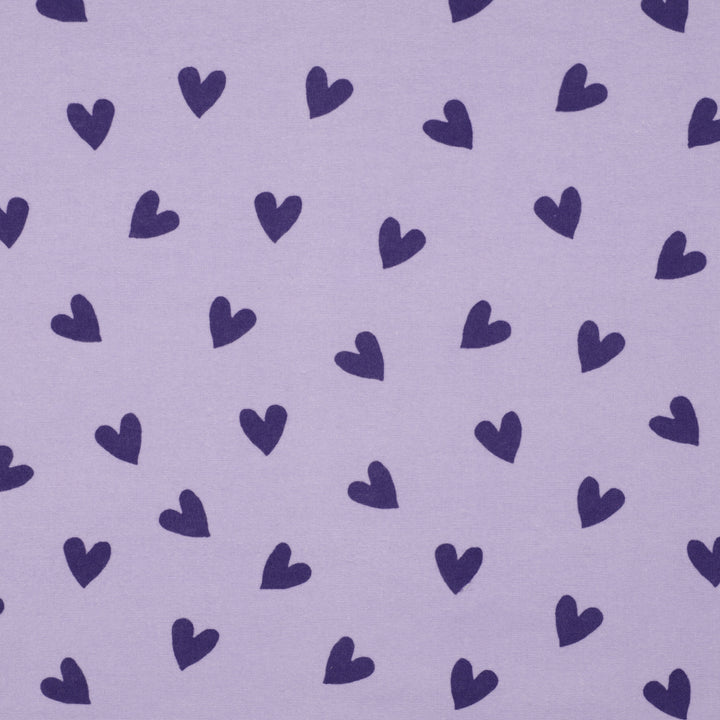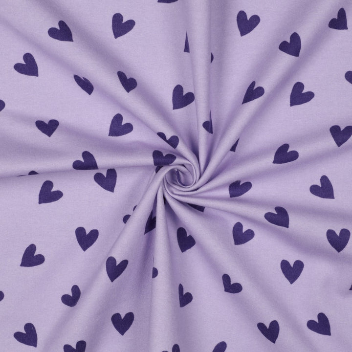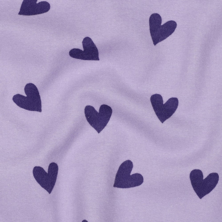 Flanelle 100% coton certifié oeko-tex - Coeurs mauves sur fond lavande (prix pour 10cm)