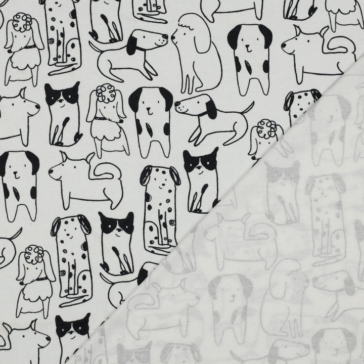 Flanelle 100% coton certifié oeko-tex - Petits chiens sur fond blanc (prix pour 10cm)