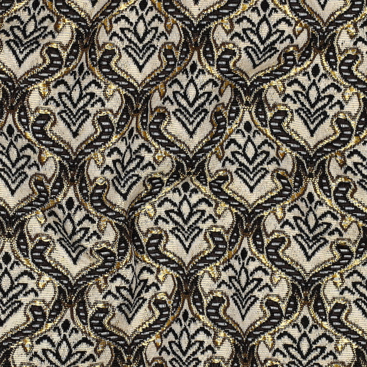 Superbe gobelin avec un motif ornemental géométrique avec lurex. Ce tissus peut convenir pour l'ameublement mais aussi pour le vestimentaire comme une belle veste ou une jupe droite!