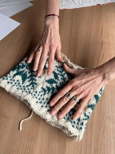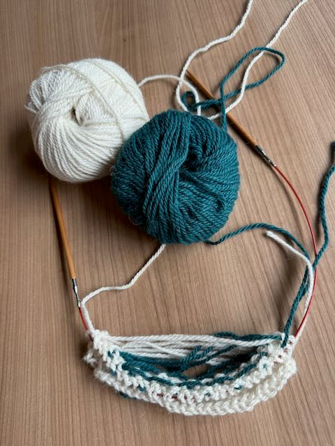 Nous tricoterons ensemble un col en jacquard à deux couleurs de façon à comprendre les principes et les gestes de la techniques. Il y a également du temps de tricot à domicile sur l'ensemble de l'ouvrage.