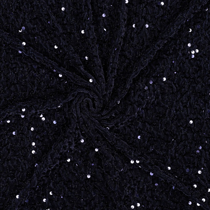 Jersey festif : velours et sequins bleu saphir (prix pour 10cm)