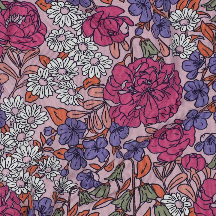 Ce jersey tout doux sera parfait pour la réalisation de vos tee-shirts, robes et vêtements d'enfants. Son motif de fleurs des champs aux couleurs douces sera parfait pour vos confections de tee-shirts, blouses, robes, vêtements de nuits, lingerie....