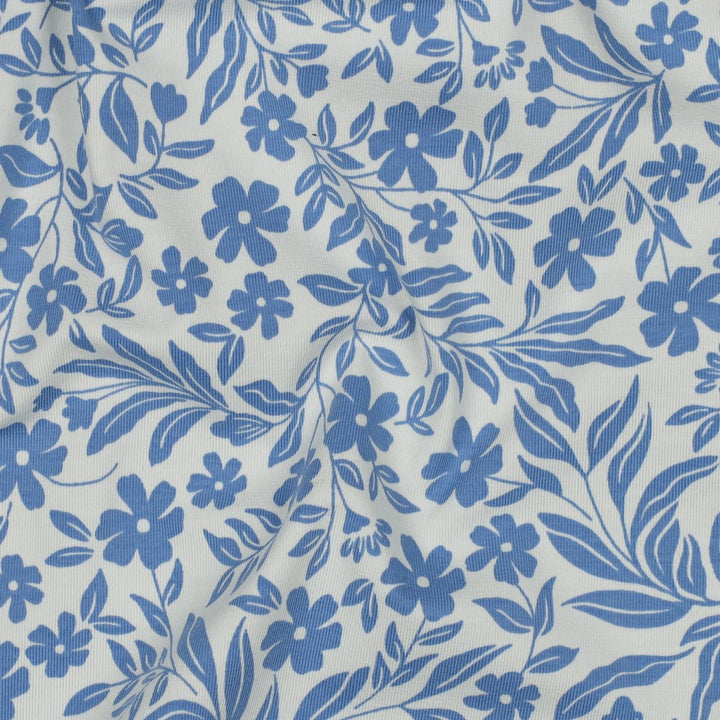 Jersey "Je suis fleur bleue" certifié oeko-tex (prix pour 10cm)