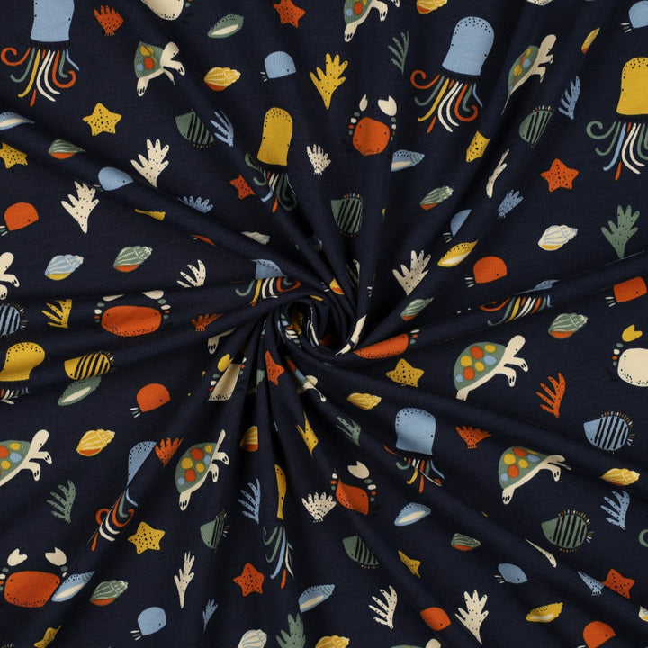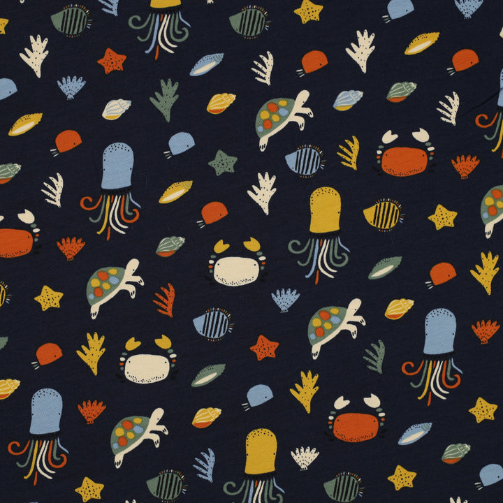 Jersey "Sous l'océan sur fond bleu" certifiée oeko-tex (prix pour 10cm)