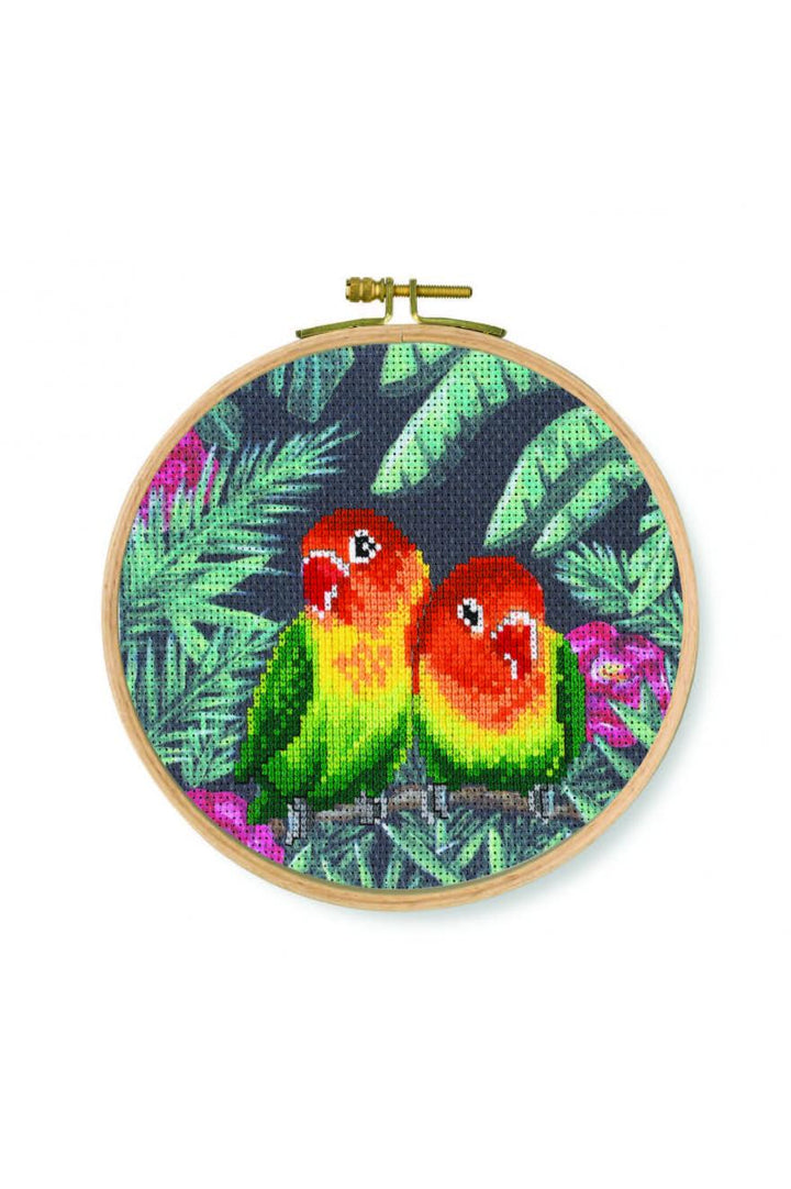Mettez un peu de couleurs et d'exotisme dans votre intérieur avec ce kit complet à broder au point de croix, sa toile Aïda 5.5pts/cm est imprimée, vous ne brodez que les 2 oiseaux.
