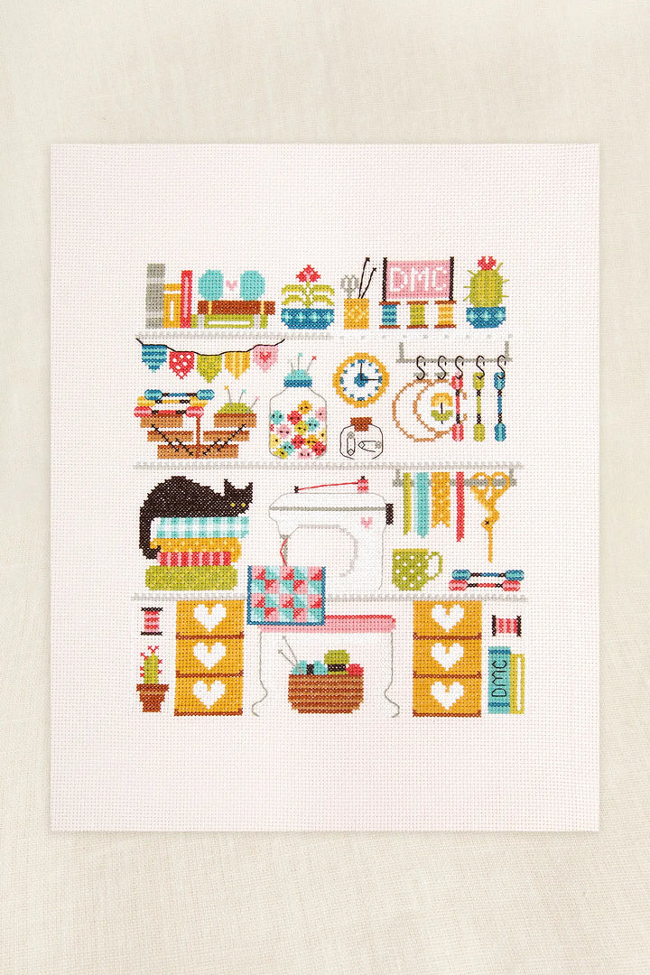 Ce magnifique modèle de point de croix représentant un atelier créatif inspirant est réalisé avec des nuances douces et apaisantes de fils Mouliné Spécial. Il sera parfait encadré dans votre atelier ou dans tout espace ayant besoin d’une touche créative. Conçu par Little Dove Designs.
