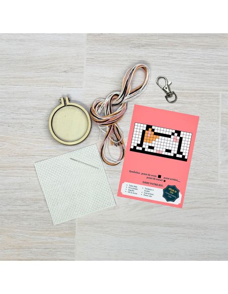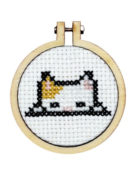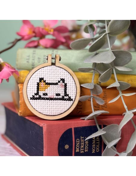 Conçu par The Crafty Kit Company en Écosse, ce mini kit au format boîte d’allumettes séduit par son design amusant et moderne. Parfait pour débuter au point de croix, il contient tout le nécessaire pour broder un motif adorable et le monter dans un mini tambour de 5 cm
