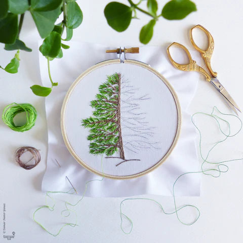 Le tissu est imprimé d'un motif gris clair, vous permettant de visualiser l'emplacement des points. Les possibilités de broderie sont infinies : créez une superbe décoration murale encadrée dans un cercle à broder ou tout autre cadre de votre choix, appliquez-la sur une housse de coussin ou un sac, offrez-la en cadeau fait main pour les fêtes ou embellissez votre intérieur.
