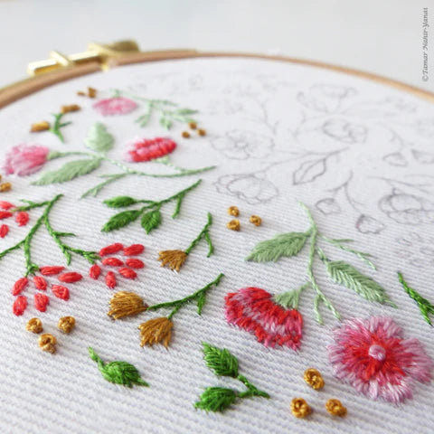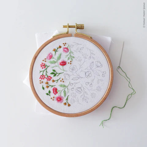 Le tissu est imprimé d'un motif gris clair, vous permettant de visualiser l'emplacement des points. Les possibilités de broderie sont infinies : créez une superbe décoration murale encadrée dans un cercle à broder ou tout autre cadre de votre choix, appliquez-la sur une housse de coussin ou un sac, offrez-la en cadeau fait main pour les fêtes ou embellissez votre intérieur.