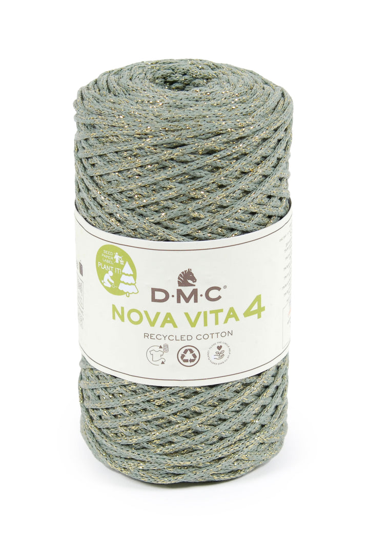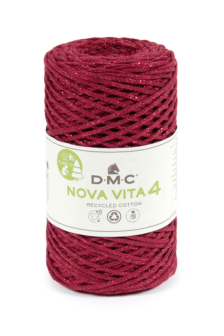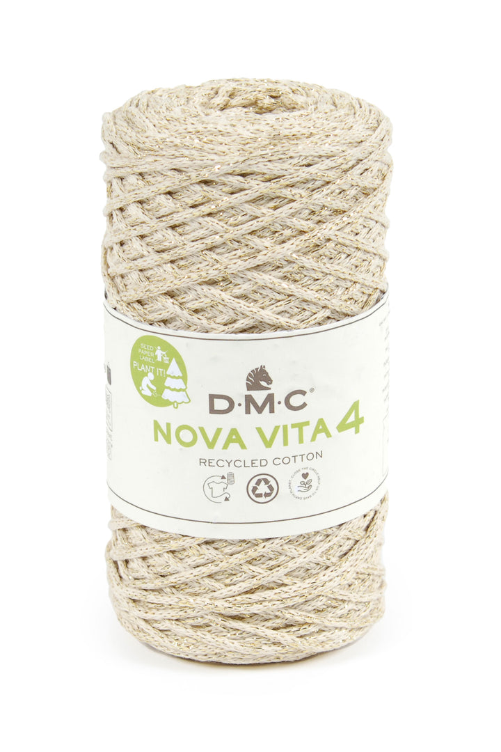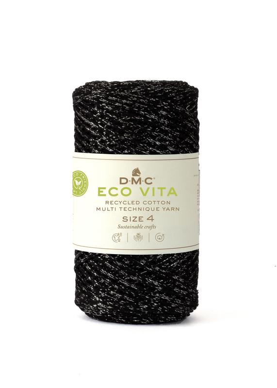 Ce nouveau fil composé de coton, polyester et fil métallisé est 100% recyclé et est issu comme tous les fils de la gamme ECO VITA de déchets textiles. Cette combinaison de fibres argentées ou dorées, selon la couleur du fil choisi, ajoutera de la brillance et donnera une touche distinguée à vos créations de tricot, crochet ou macramé.
