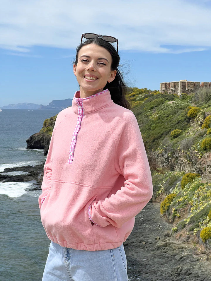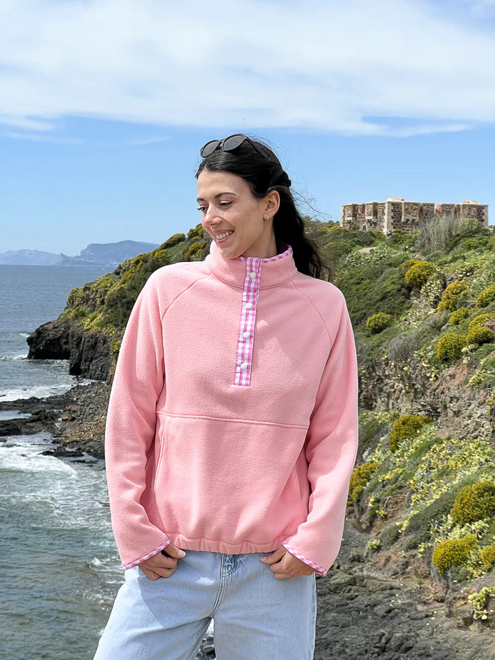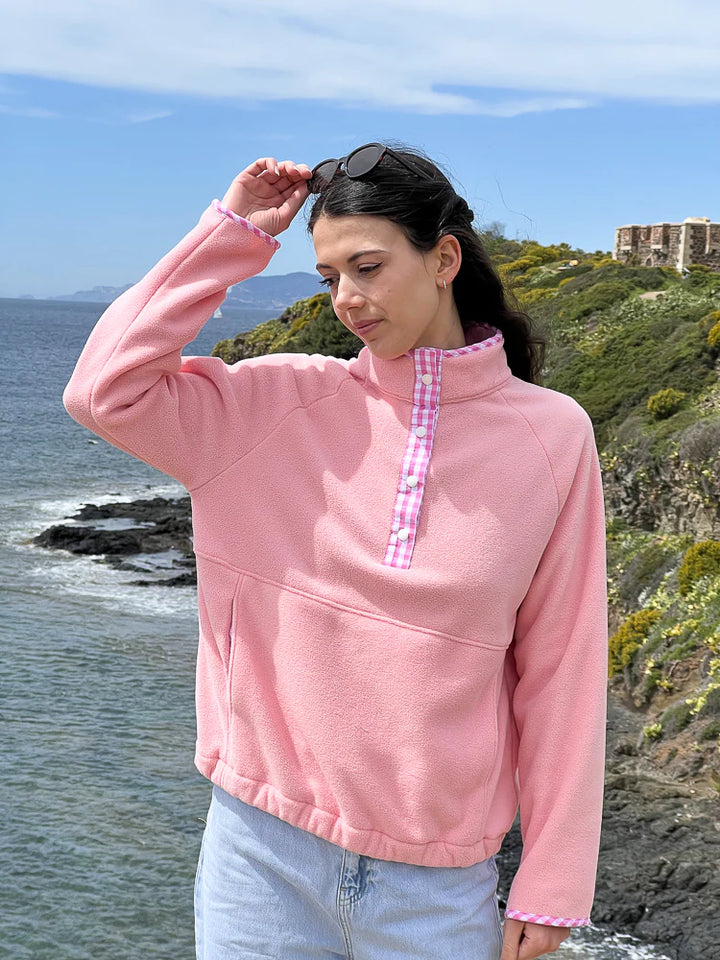 Pensé pour allier douceur et modernité, le sweat Andréa est le parfait mélange entre confort et allure. Sa coupe légèrement loose est rehaussée de jolis détails qui font toute la différence : une patte de boutonnage à boutons pression, un col montant avec une finition au biais ainsi qu'une grande poche invisible.