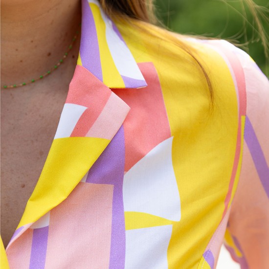 Ce modèle se réalise dans une large gamme de tissus de poids moyens tels que le tencel, le crêpe viscose, la popeline de coton ou encore le lin, pour un rendu à la fois chic et confortable.