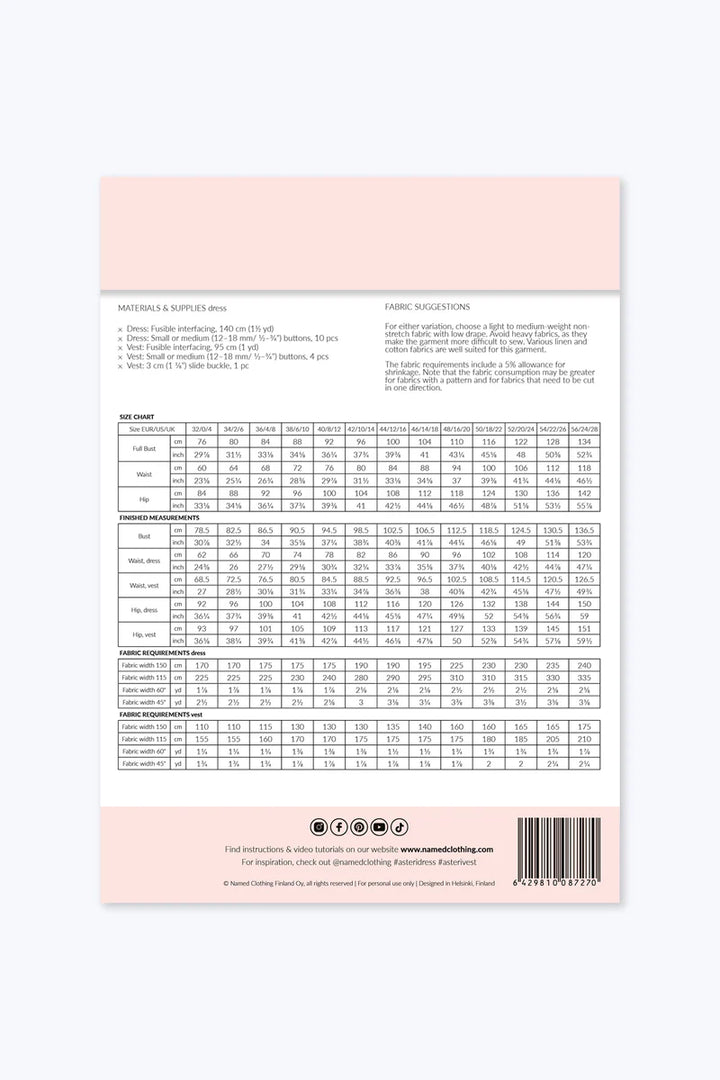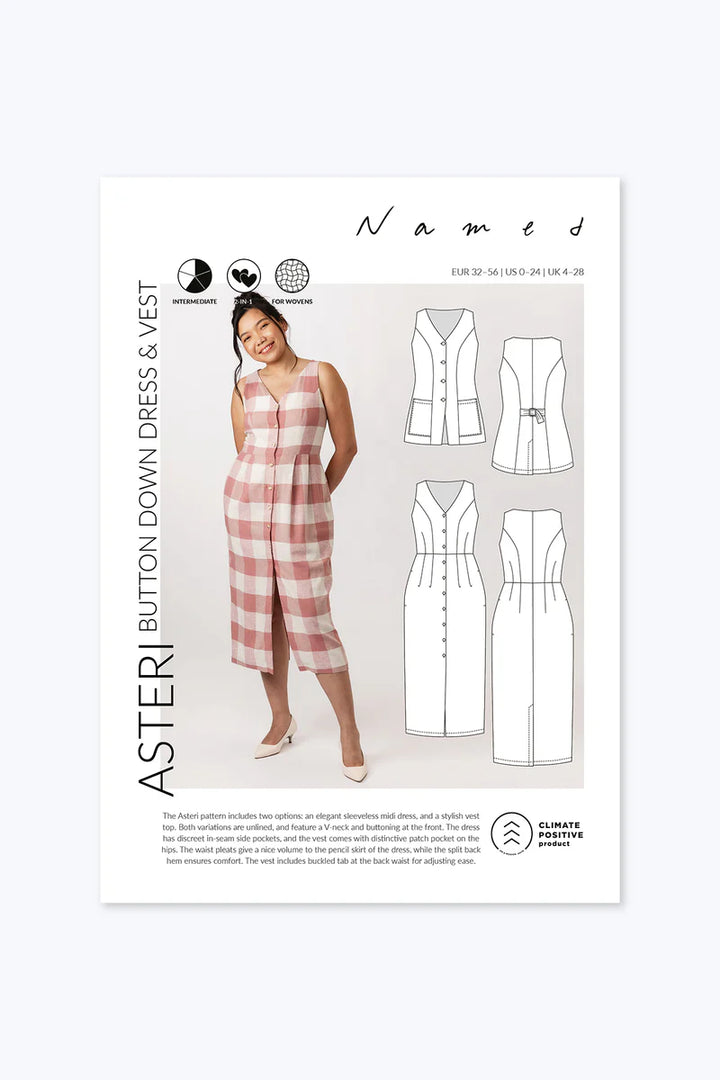 PDF - patron digital Asteri button down dress & vest de Named Clothing du 32 au 56 (angl)