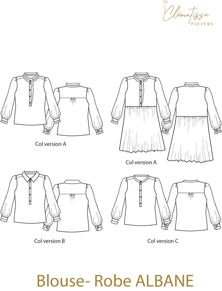 PDF patron digital de la chemise et robe chemise Albane de Clematisse Pattern du 34 au 52 (fr)