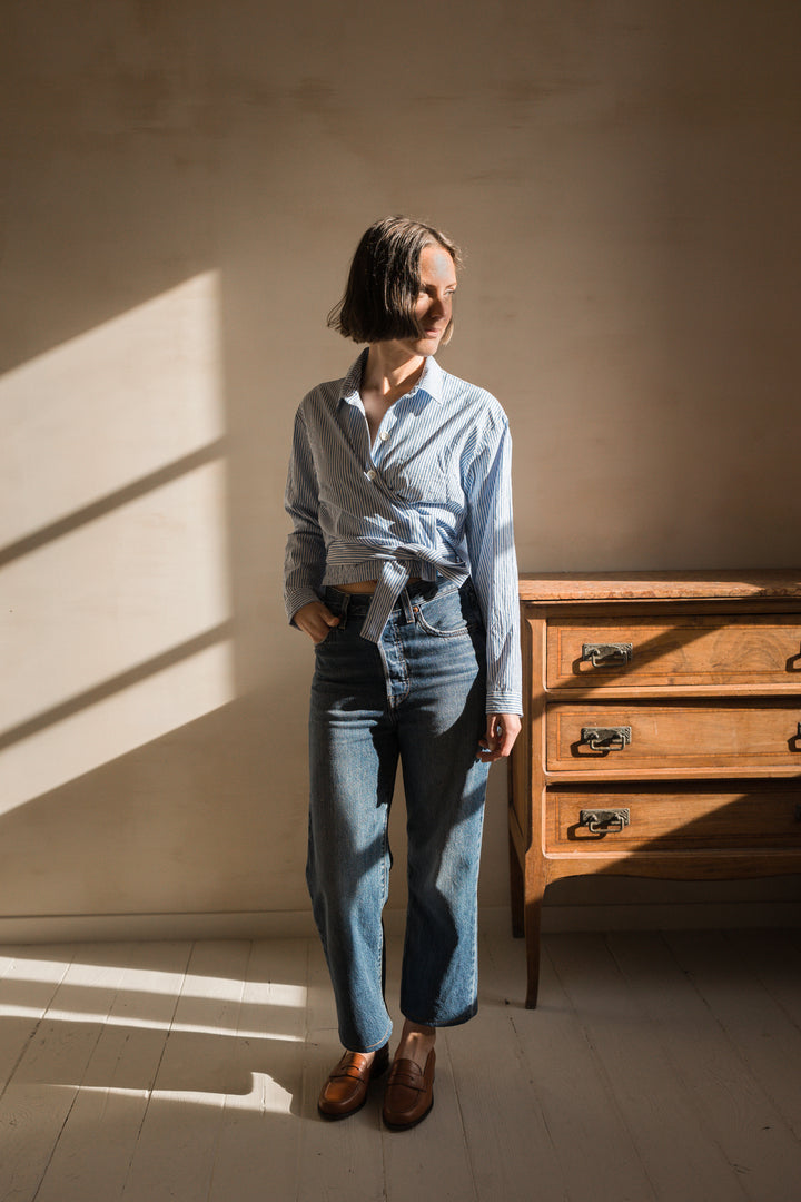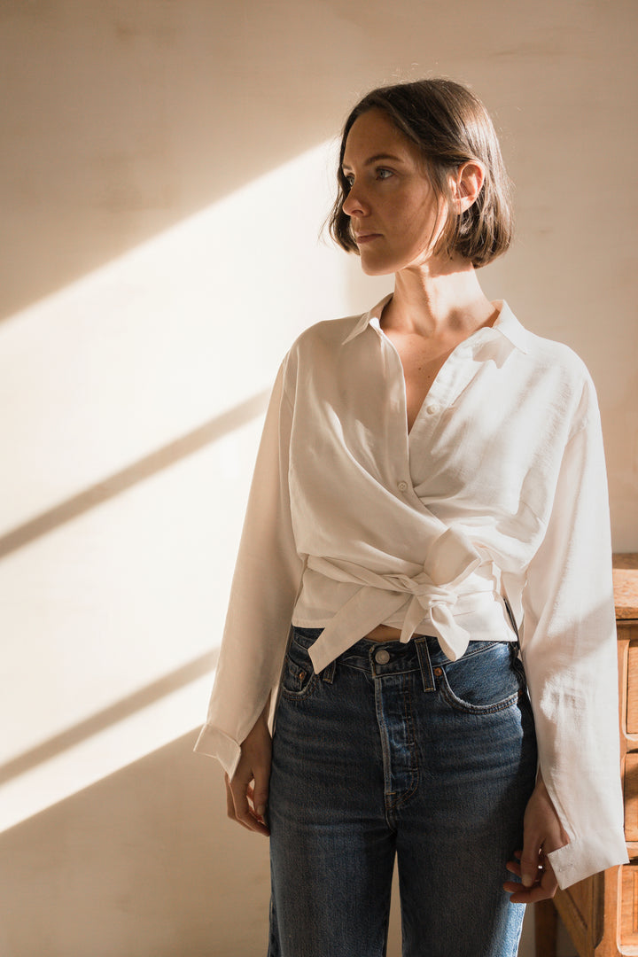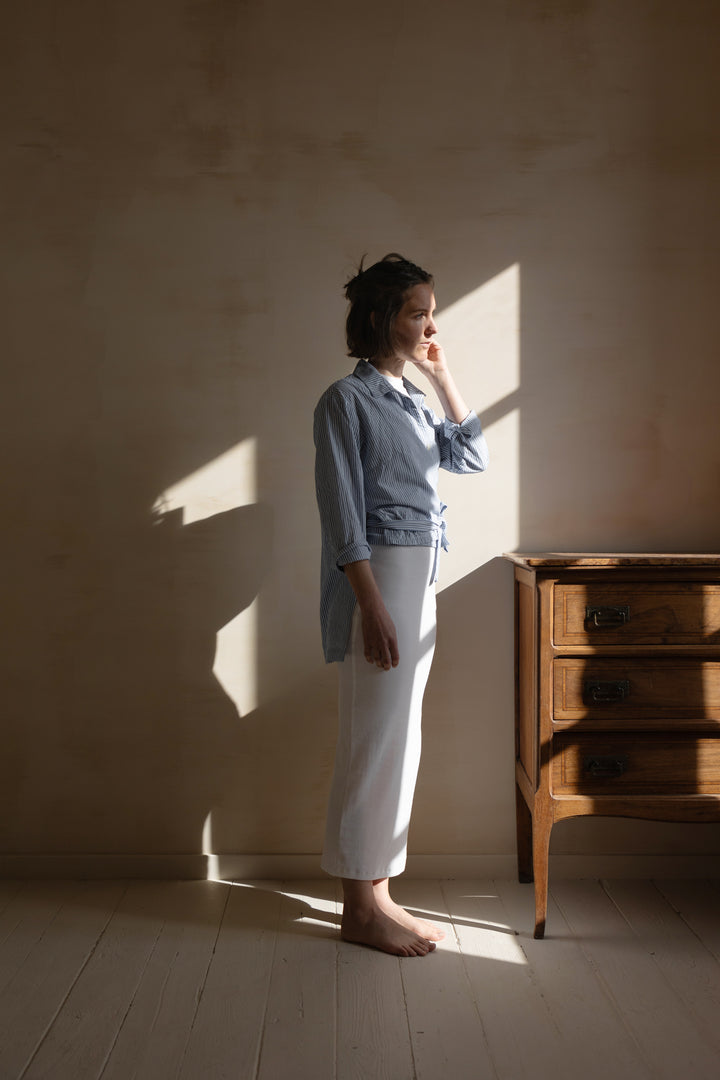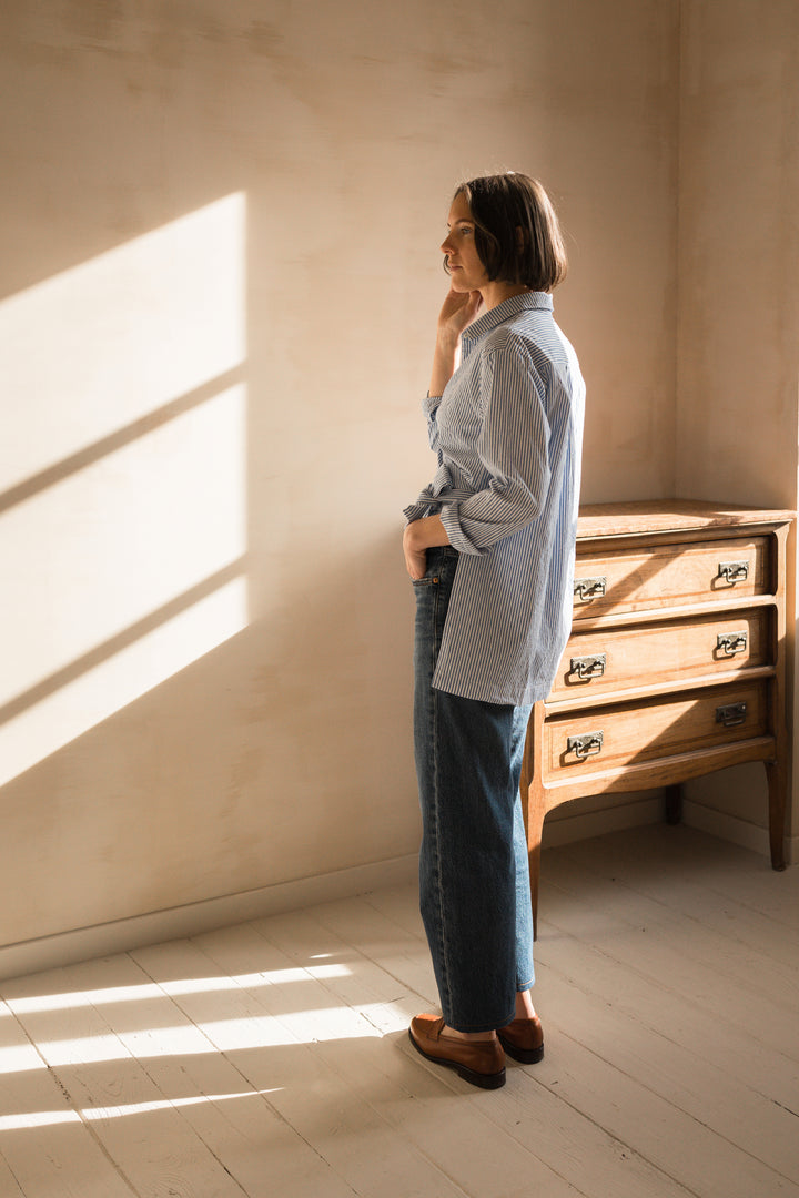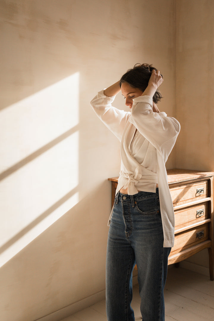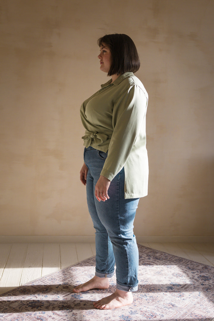 Hortense capture l’allure décontractée des chemises d'homme, transformée en une pièce moderne et féminine. Avec son tombé fluide et sa coupe loose, elle mixe habilement les codes masculins et féminins, offrant un décolleté cache-cœur subtil. L’ouverture des poignets, plus simple à coudre qu’une patte capucin, ajoute une touche de praticité et de modernité. Le patron est inclusif, disponible de la taille 32 à 64 et proposé en plusieurs bonnets : Gamme 1 (A/B et C/D) et Gamme 2 (C/D et E/F). Hortense est une chemise facile à porter, pleine de caractère.
