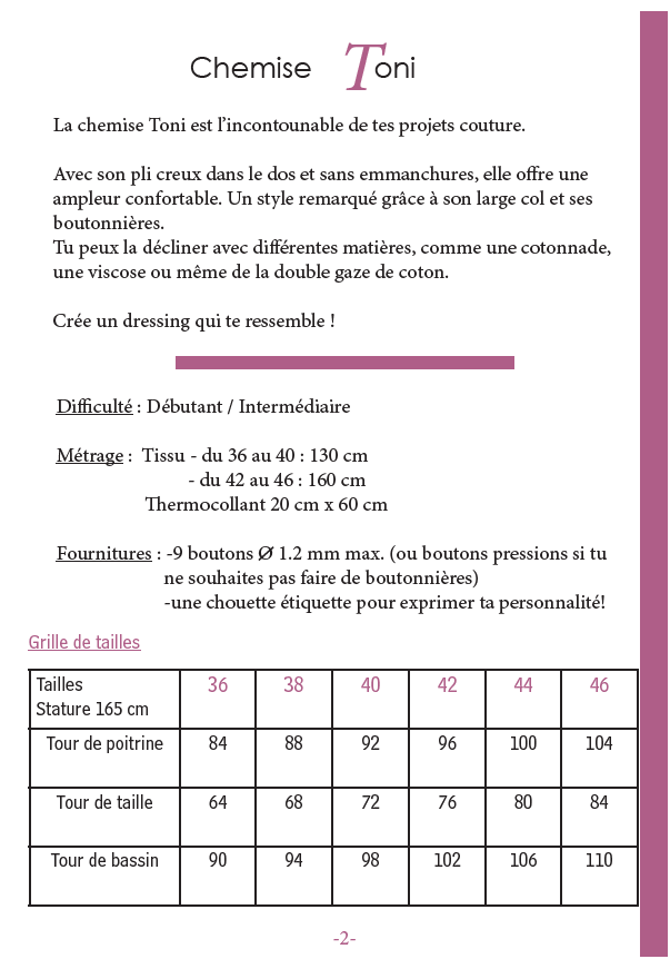La chemise Toni est un incontournable pour tous vos projets de couture.