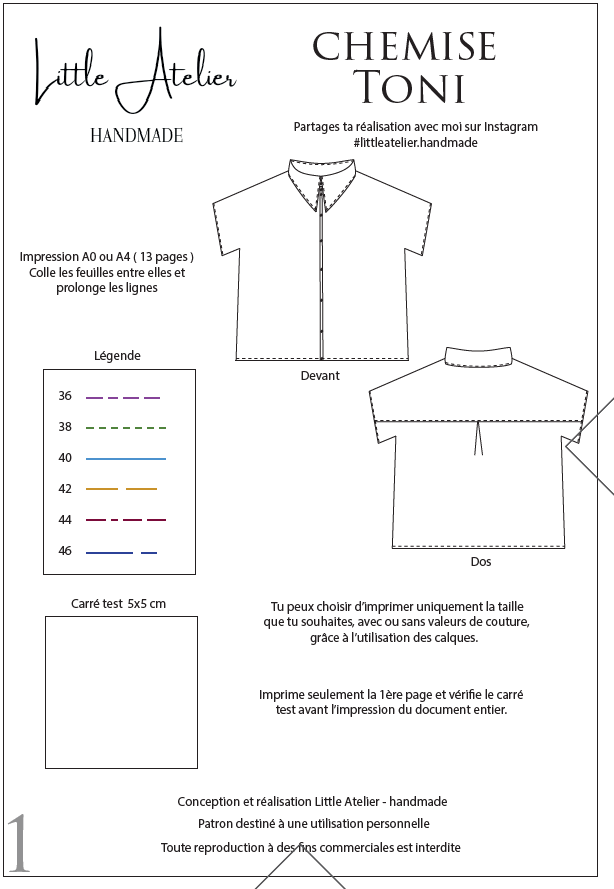 PDF - Patron digital de la chemise Toni de little atelier du 36 au 46 - fr
