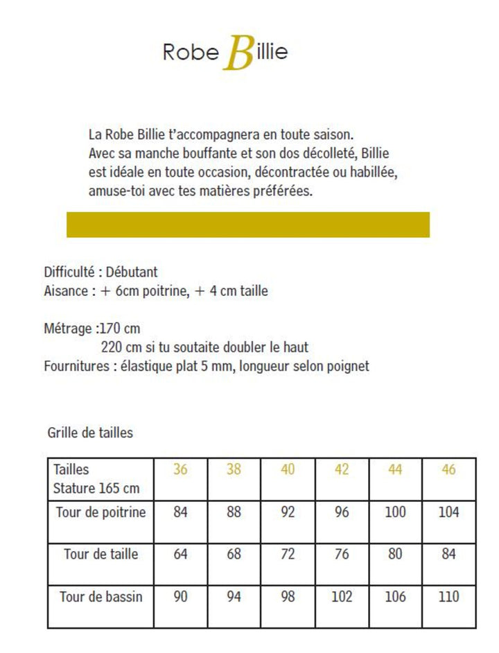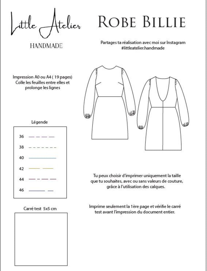 PDF - Patron digital de la robe Billie de little atelier du 36 au 46 - fr
