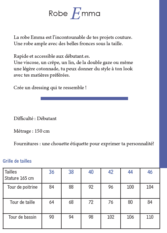 La robe Emma est un incontournable pour tous vos projets de couture.